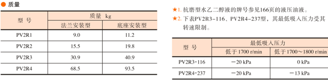 ★2.下表油研葉片泵PV2R3-116、油研葉片泵PV2R4-237型,其最低吸入壓力受其轉(zhuǎn)速限制。
