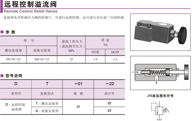 DT-01-22油研遠(yuǎn)程控制溢流閥型號說明及參數(shù):